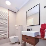 Ingericht met een kastje, sommige kamers hebben ook een balkon en de keuken. Ook de aanwezigheid van een haardroger en slippers in de badkamers zorgt voor een comfortabel verblijf.